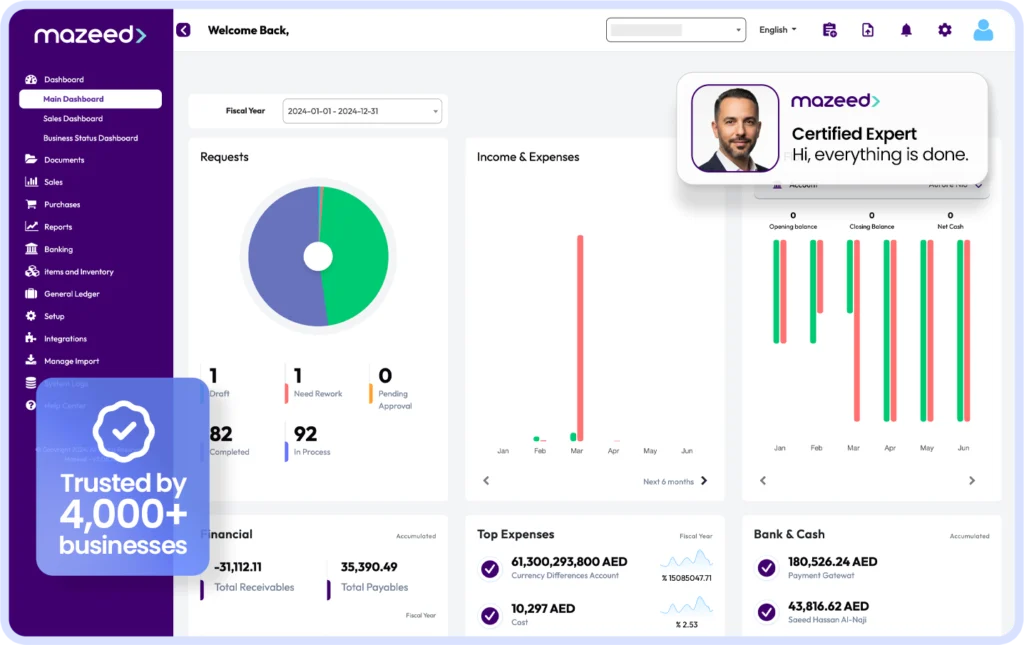 All your accounting is done using mazeed’s FTA-ready software, giving you speed, accuracy, and compliance in one platform.